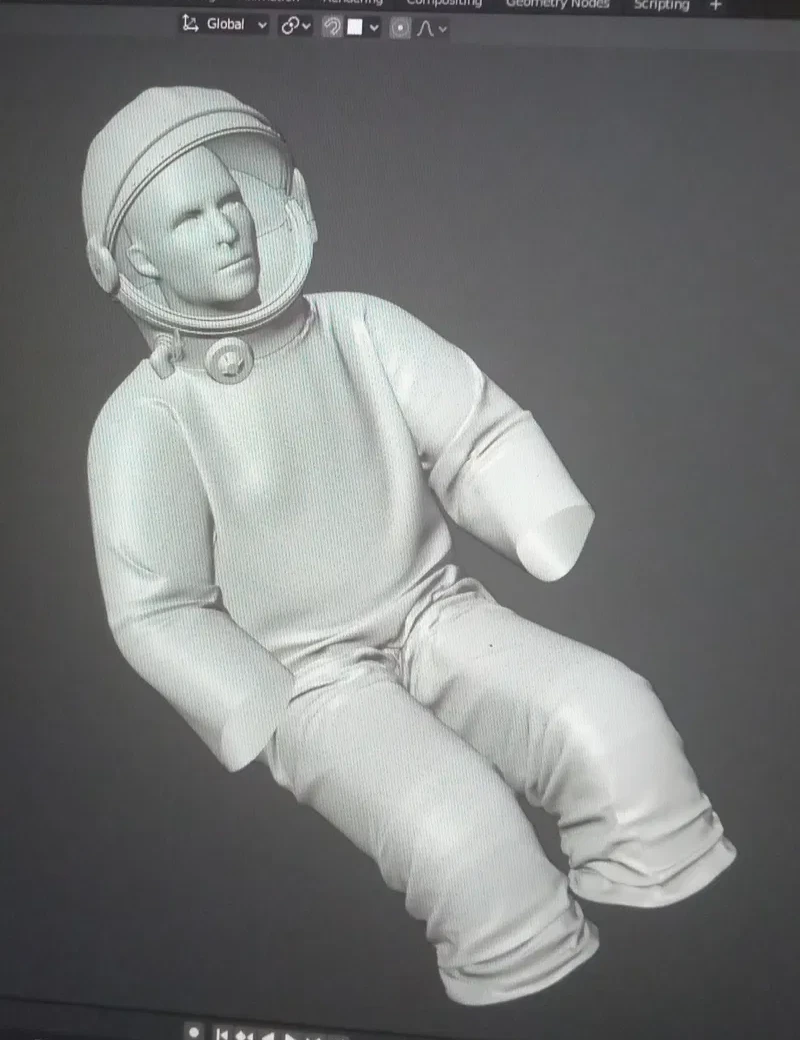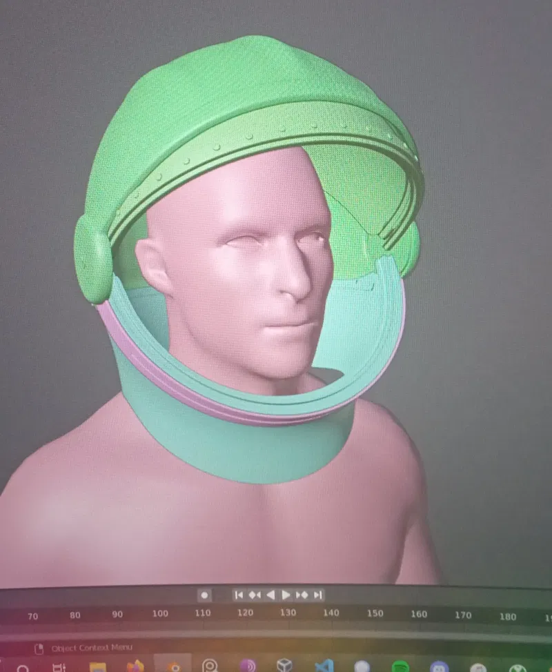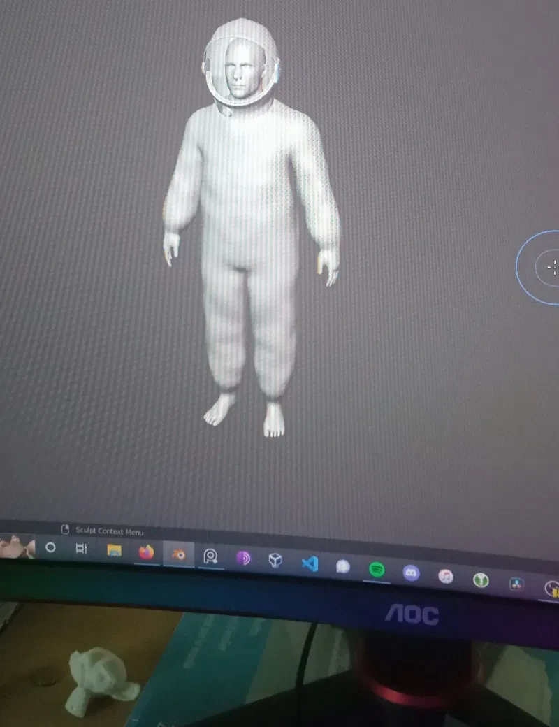 Next I needed a model of the spacesuit. There’s a timelapse of most of the modeling process here. I started with the helmet because it was a hard surface element which is easier to model. Then I slowly went down and added oxygen tubes and such.