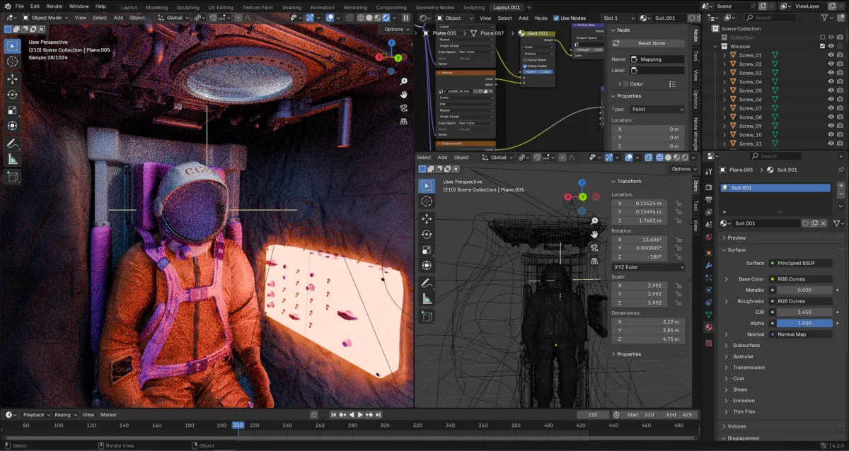 Because the capsule is very cramped I had to cut it in half to be able to place the virtual camera without clipping through the walls.