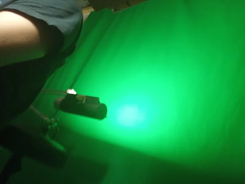 The goal was to replicate how it would look if the actor were in the helmet. This means that we have to block the light on the sides, the back and at the top. At the same time I needed to see the green screen to cut out the actor so it made the whole ordeal complicated. I came up with this strange contraption which did it’s job.