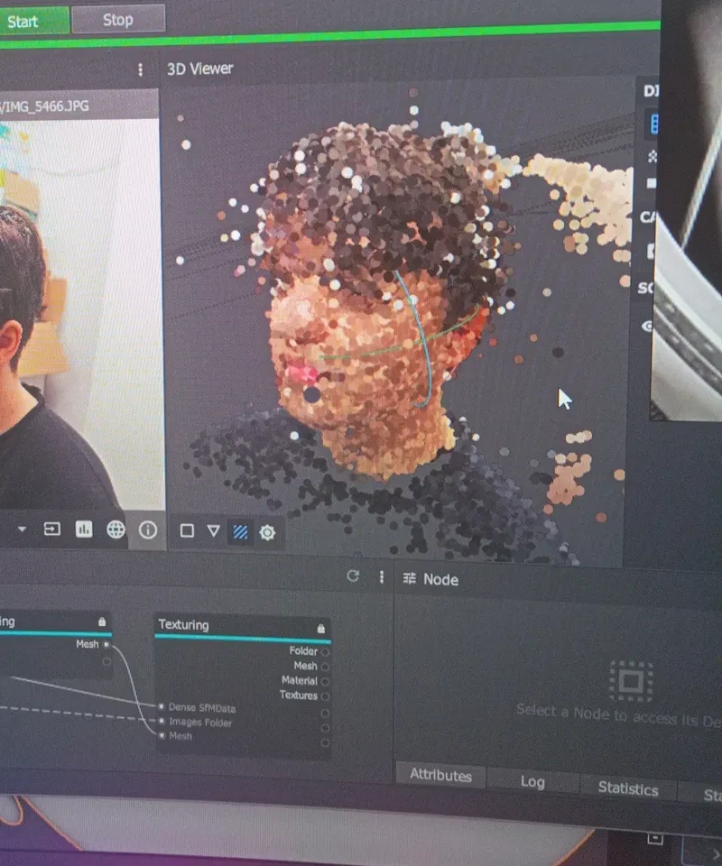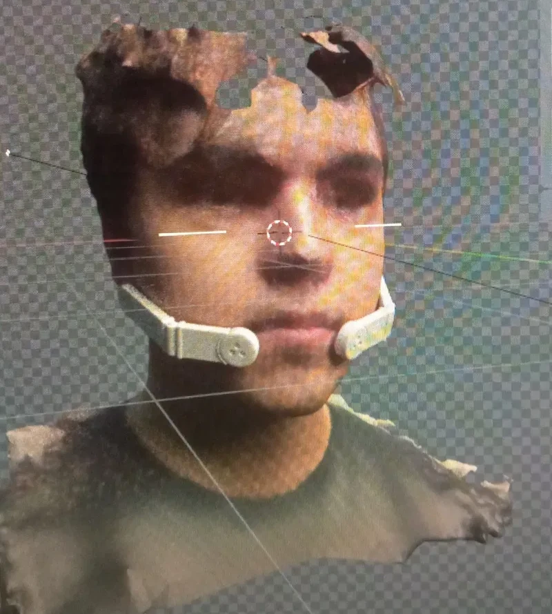 The MDD file contains a default face with the animations but I wanted to add my friends face to have the correct proportions. I generated a photoscan of his face and then cleaned up the mesh. I used meshroom for photoscaning.